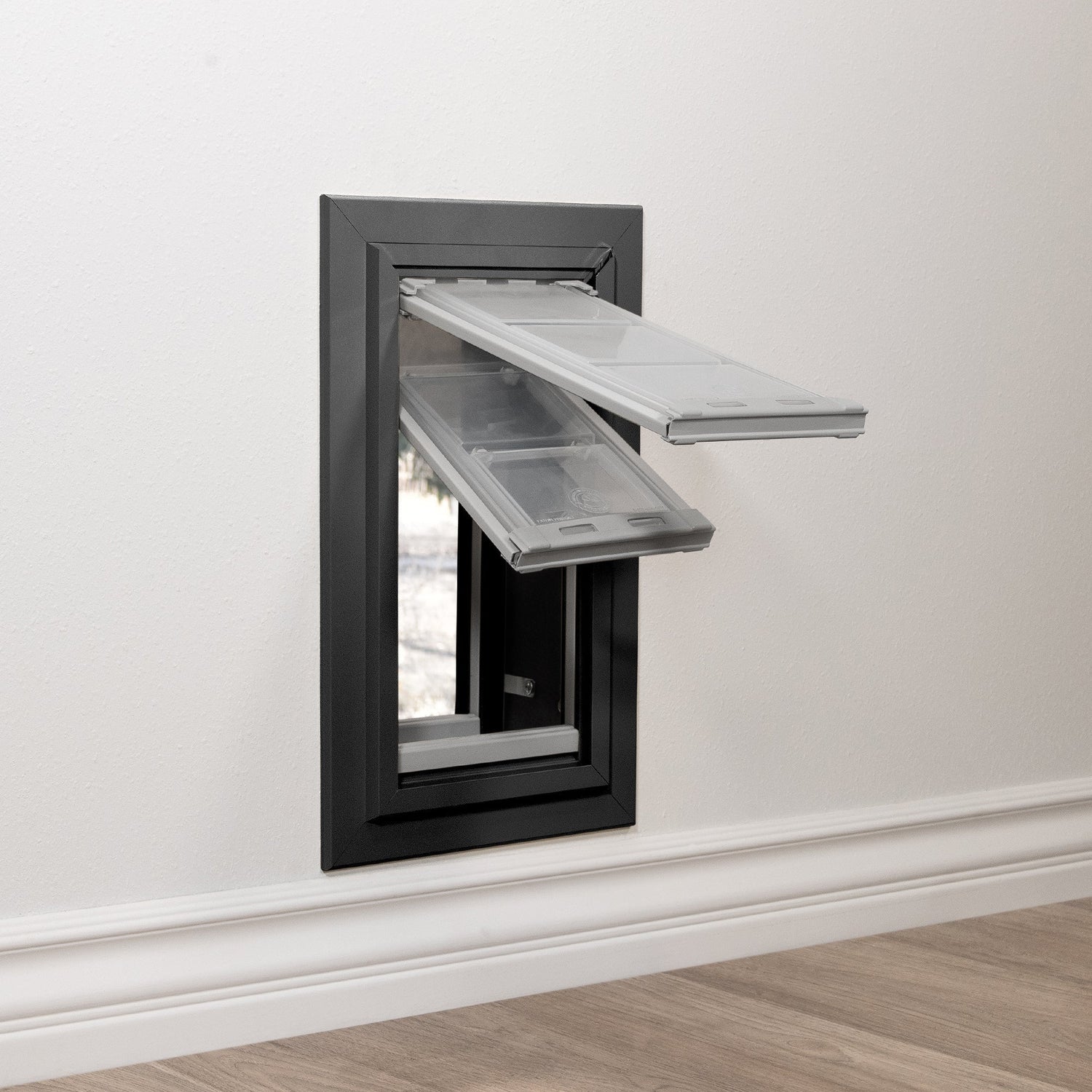 - Wall-mounted pet door for walls 7-1/2" - 13" thick