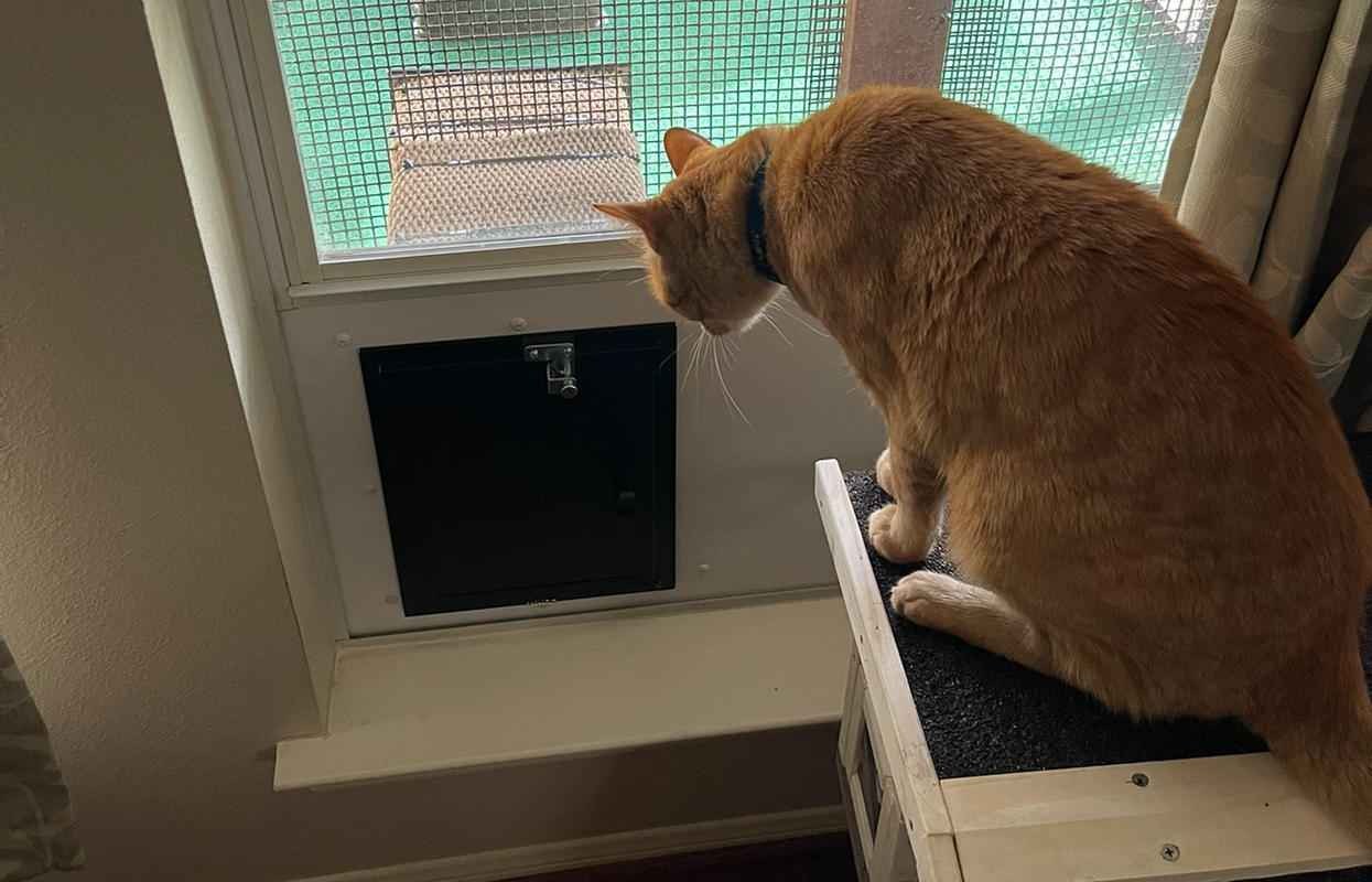 Used Pet Door for access to Catio from Bedroom Window.