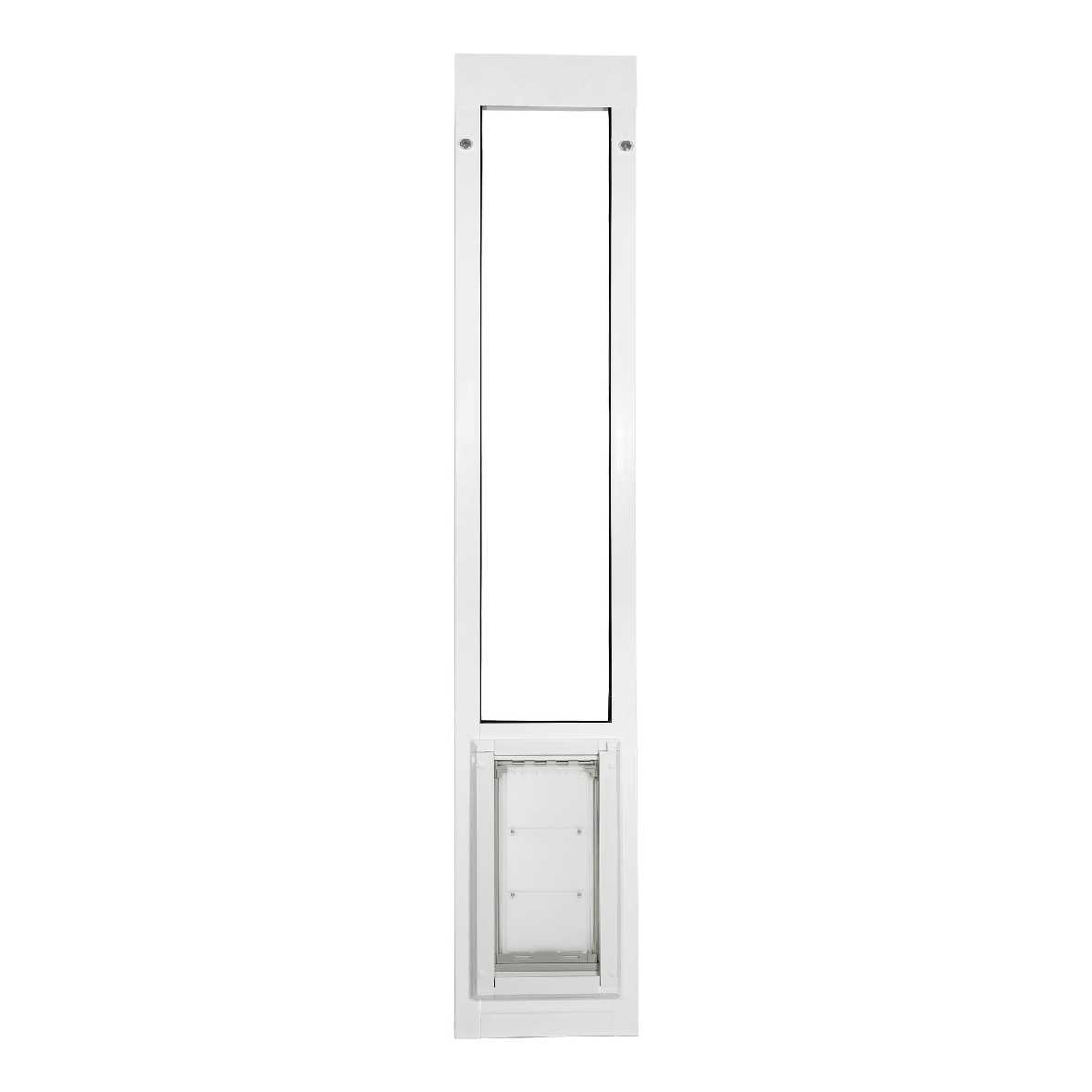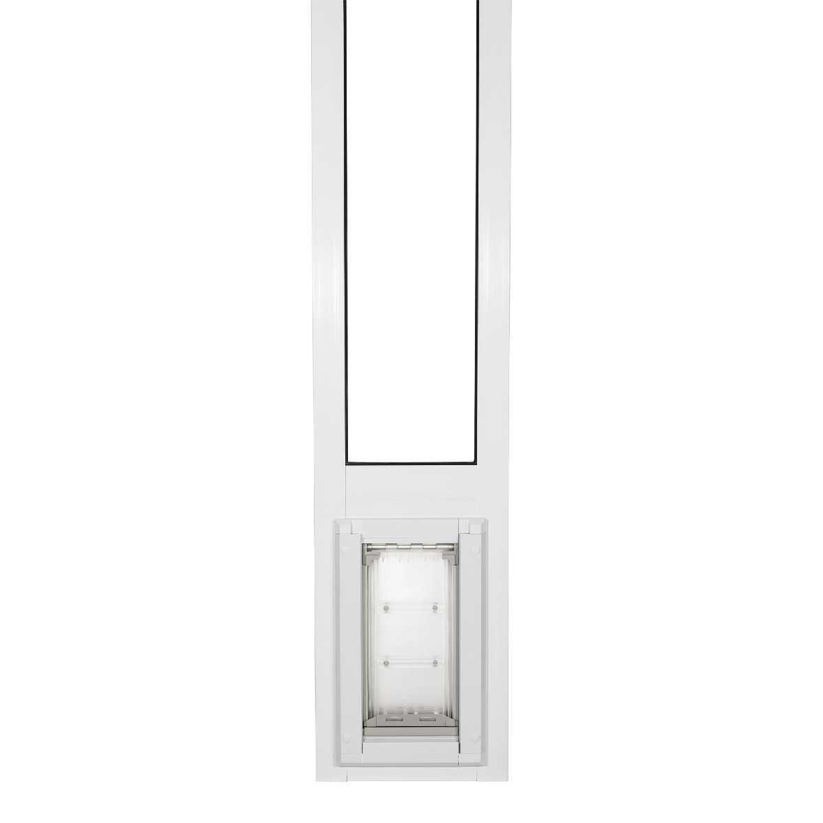The panel fits vinyl sliding glass doors with a minimum 1 1/2" track thickness, ensuring a secure fit without the need for permanent modifications. The spring-loaded design allows for simple installation and easy removal when necessary, making it an excellent choice for rentals or seasonal use. 5/16" can be trimmed off the top of pet door panel if you need it slightly shorter to fit.